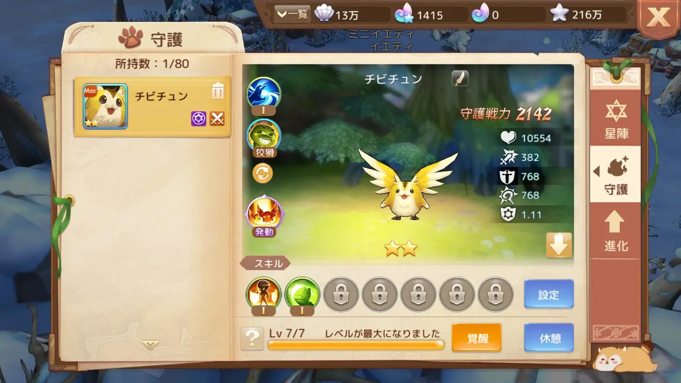 守護は「守護エッグ」というアイテムから入手でき、育成することで能力も強化できます。