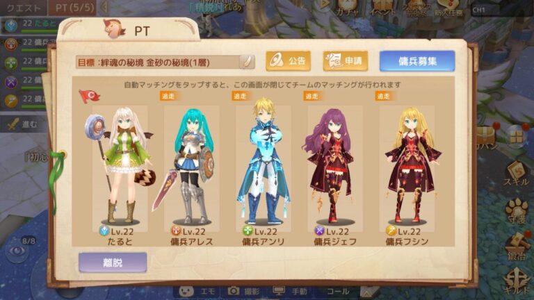 実際にプレイしてみると、自分でパーティを作ると自動マッチングですぐにメンバーが集まるのでとても便利でした。