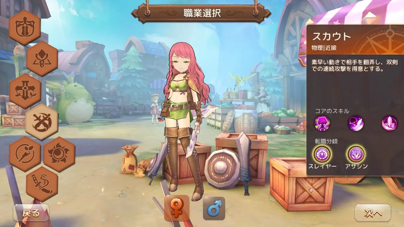 ゲームを開始すると、まず最初にキャラクターの性別と職業を選択します。