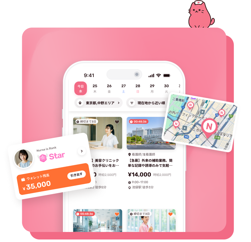 医療機関や企業と看護師を直接つなぎ、スマホだけで完結する新しい働き方を提供しています。iPhoneとiPadに対応していて無料でダウンロード可能です。