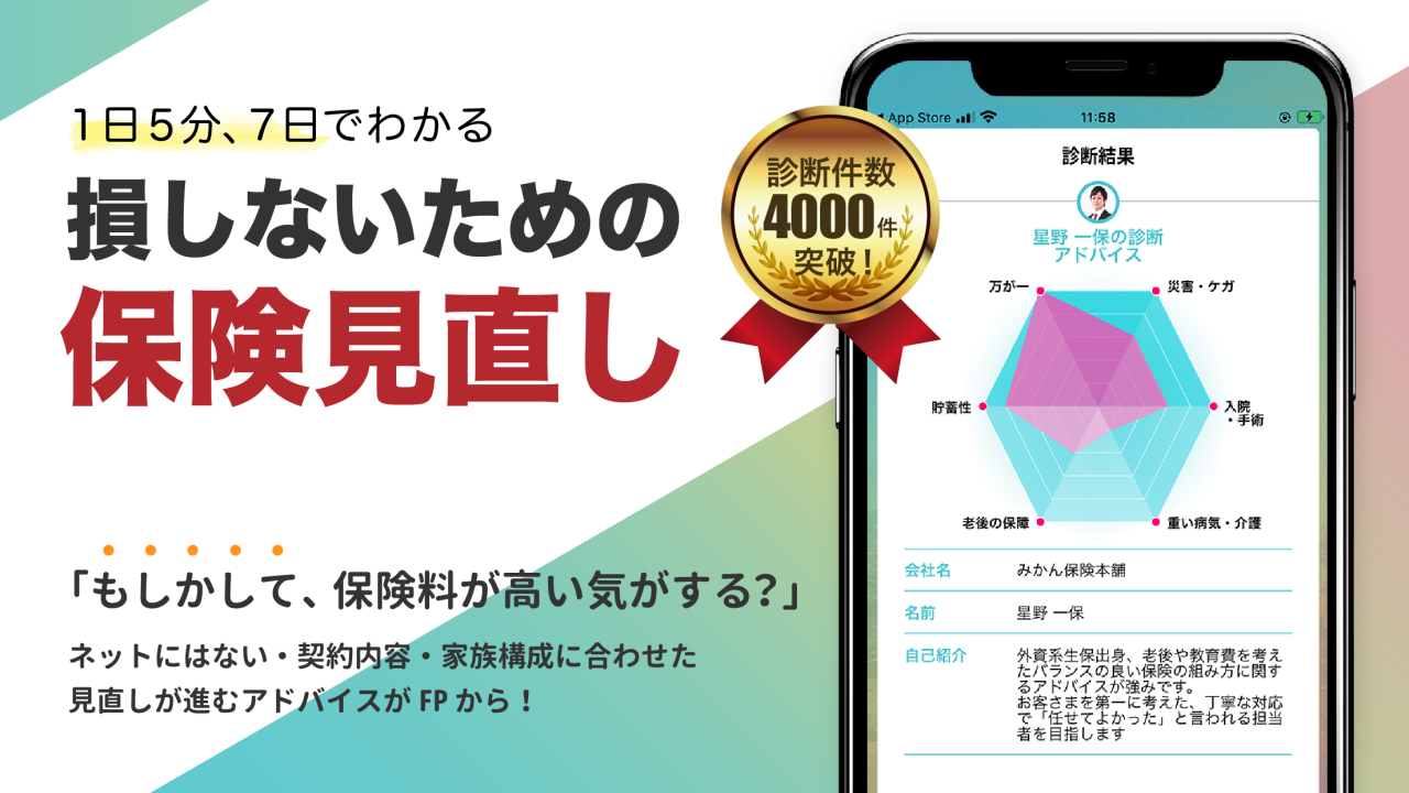 スマホで保険証券を撮影して送るだけで、専門家から丁寧で具体的な診断結果が返ってくるこの流れは、忙しい毎日の中で保険を見直したい方にとって、とても実用的でハードルを下げてくれる魅力的なサービスだと強く感じました。